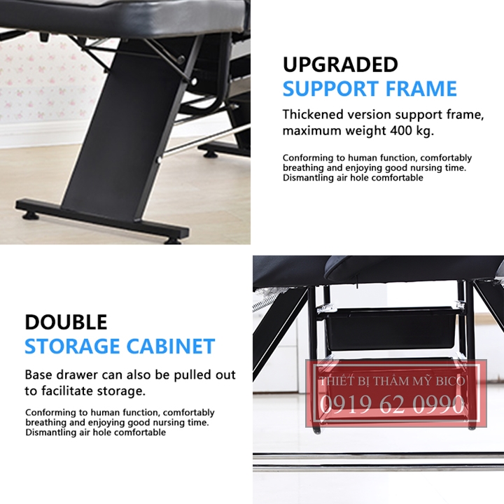 Giường phun xăm thẩm mỹ: bạn có thể nâng cao đầu lên và đặc biệt bo vát ôm đầu rất dễ dùng trong dịch vụ phun xăm