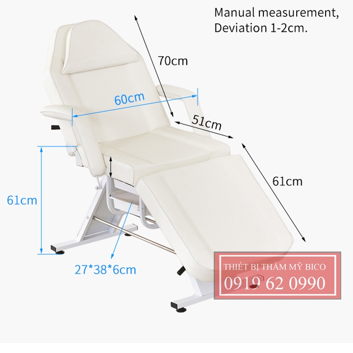 Kích thước giường tiêm: Rộng 62cm x Dài 180cm x Cao 70cm